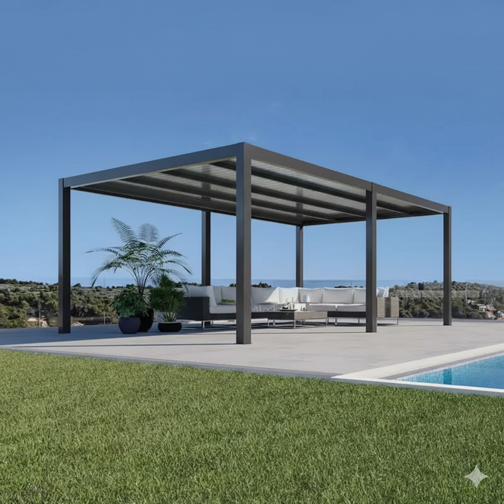 Mystic New 100% Rainproof Freestanding Grey Fixed Roof Outdoor Pergola