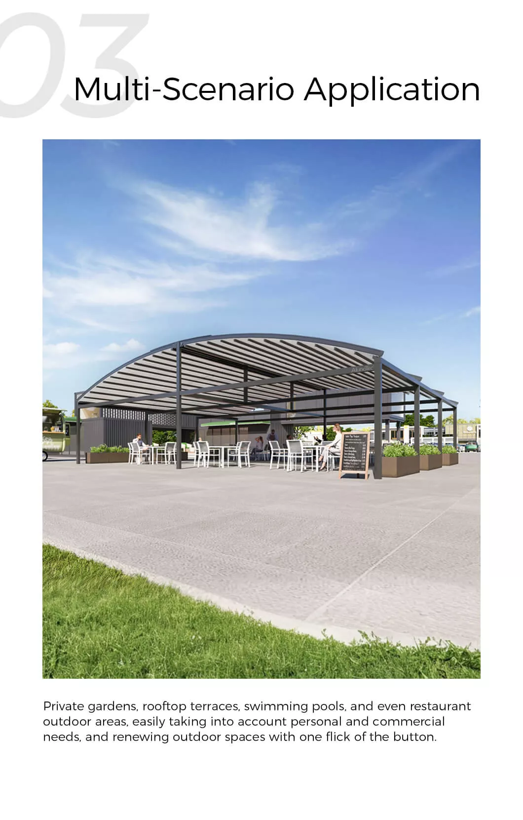 Private gardens, rooftop terraces, swimming pools, and even restaurant outdoor areas, easily taking into account personal and commercial